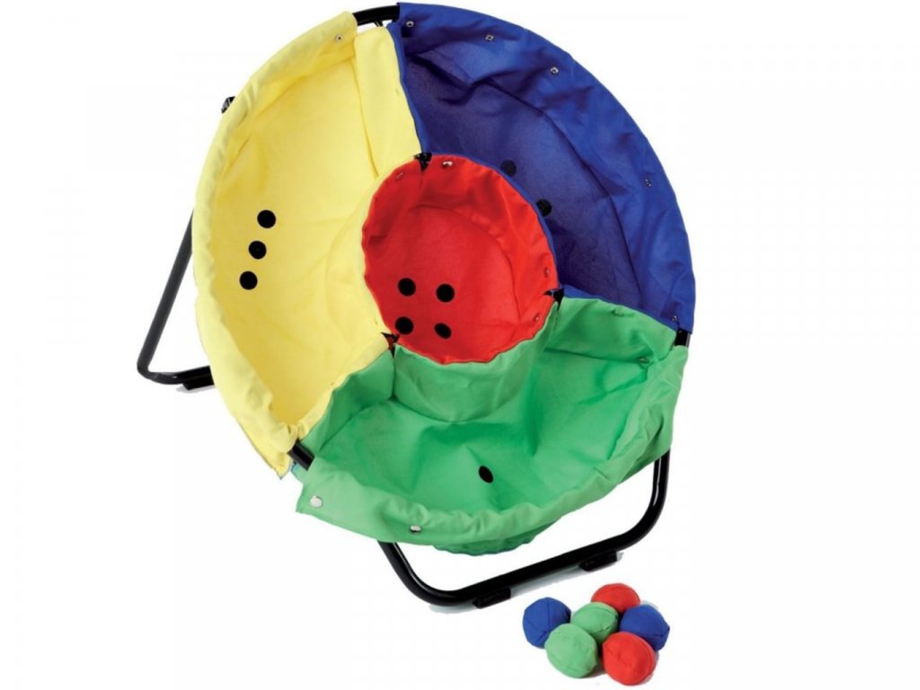 Jednoduchá a funkčná konštrukcia, na ktorej sú pripevnené štyri farebné vrecúška. Šest mäkkých žonglovacích loptičiek - ku každej farbe vrecúška môžete priradiť rôzne bodové ohodnotenie a osoby môžu medzi sebou sútažiť na malom turnaji. Výborné pre rozvoj motoriky, koncentrácie, podpora socializácie. Terč aj loptičky sú dostatočné veľké preto je hra vhodná okrem detí aj pre seniorov či zdravotne znevýhodnených.