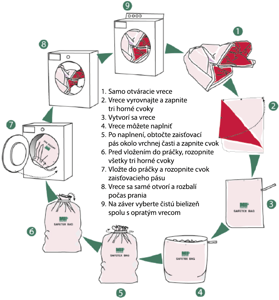 SAFETEXTM na zber a pranie kontaminovanej bielizne a oblečenia